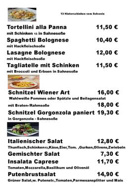 Wir haben eine kleine Speisekarte mit Gerichten von der